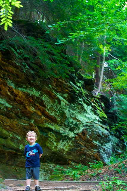When we got to the Ledges, I let Gretel off her leash and we told Lincoln that she needed to "get the wiggles out." Then Jenn said, "I know a boy who needs to get the wiggles out!" Lincoln knew exactly who she was talking about, so he started running around in the field. After a while, when we were back on the trail in the woods, he said, "I got the wiggles out. They're in the forest now."